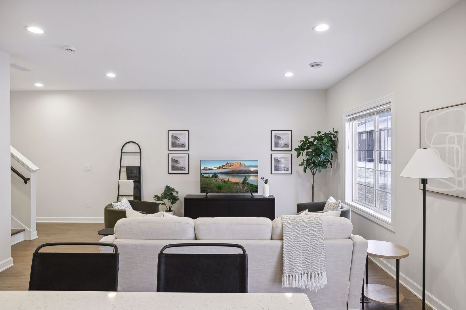 The large open kitchen floorplan features granite counter tops, custom cabinets with soft glide shut drawers and soft close hinges and brand-new stainless Energy Star appliances. The entire home is equipped with solid core doors for maximum noise reduction and privacy. Throughout is LED recessed lighting, which consumes 90% less energy than standard bulbs.