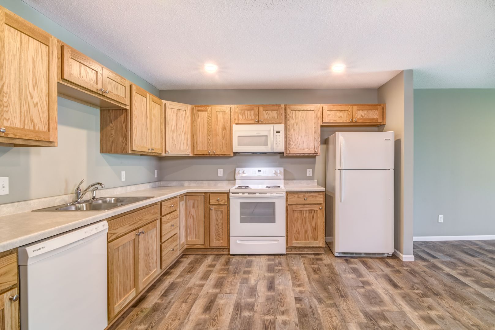 New two bedroom style town-homes in New Richmond all on a single level. Very energy efficient home. Built to the most recent building energy code standards. Andersen Windows. LED recessed lighting that consumes 90% less energy than standard bulbs. Energy Star appliances, washer and dryer included. Energy efficient gas furnace and central air. Spacious cabinets and drawers in an open concept kitchen. Large garage perfect for two vehicles and room for storage. Rear patio with privacy fence.